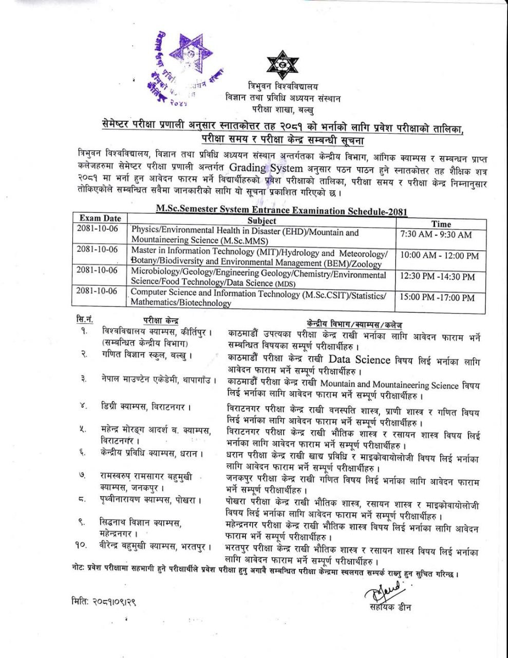 Tribhuvan University, Faculty of Science and Technology, Exam Department has published a notice for the Exam Schedule of Masters level programs. The programs includes (M. Sc, MMS), Master in information Technology (MIT),M.Sc. CSIT ,M. Sc Microbiology, MDS etc